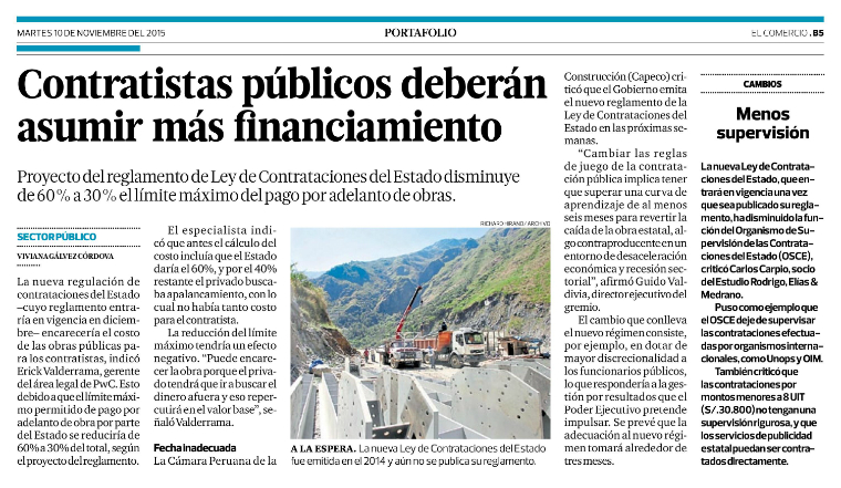 Proyecto del reglamento de Ley de Contrataciones del Estado disminuye de 60% a 30% el límite máximo del pago por adelanto de obras. La nueva regulación […]